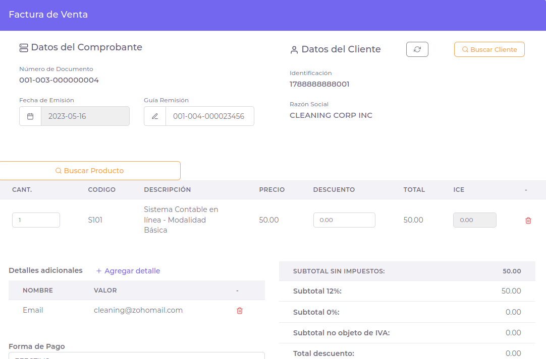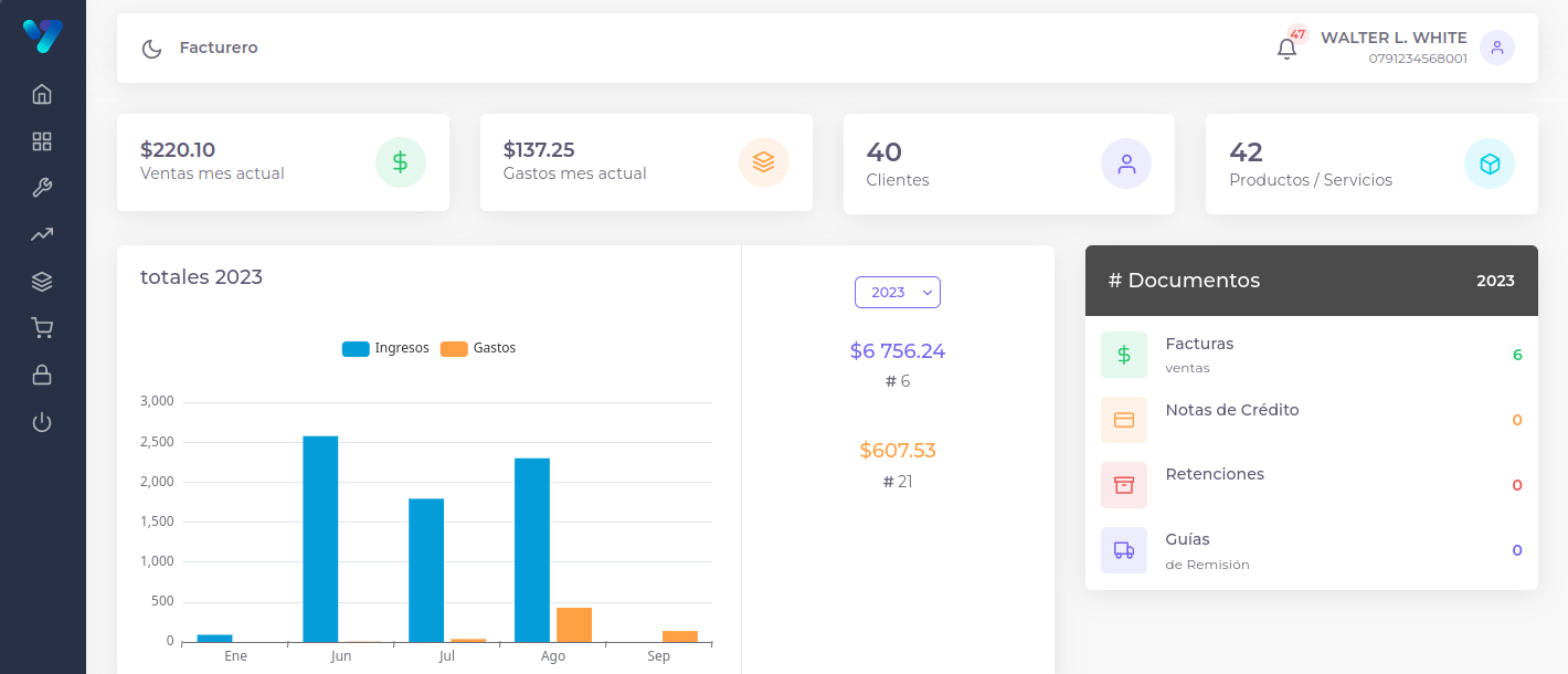 Interfaz intuitiva para manejo de su base de Clientes, Productos y Servicios, Firma electrónica y puntos de emición